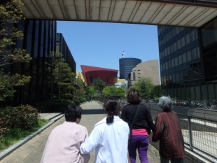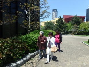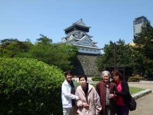 食後は小倉城周辺まで足を伸ばし、勝山公園、小倉城、北九州市役所本庁、リバーウォークを見学しました。北九州の老舗百貨店の「井筒屋」も眺める事ができました。「昔はよく行きよったねー。バスで毎週行きよった」等言われていました。