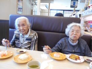 デイサービスセンターとばたの外出レク すっかりブログが滞ってしまいました(汗) 今日は、今週デイサービスセンターとばたでおこなった外食レクリエーションの様子をお見せします。 今回お邪魔したのは、イオンモール八幡東のすぐお隣にあります、スシロー八幡東田店さんです。 回転寿司は、外食レクリエーションの中でも特に人気があります。 ビールやお酒で乾杯しています。 皆さん、とても沢山召し上がっていました。 女性の利用者は、仕上げにデザートもたのまれていました。 皆さん、とても楽しそうです。 暖かいを飛び越えて、もう暑い日がやってきています。 どうか皆さん、お体に気をつけて!
