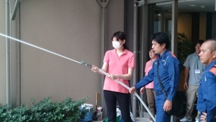 消火器を使用したことがあるスタッフは結構いましたが、散水栓を使用したことがあるスタッフはいなかったので、皆さん結構喜んでいました。