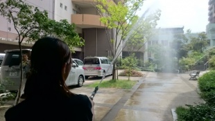 結構な水圧なので、スタッフは一生懸命ホースを握っていました。