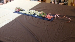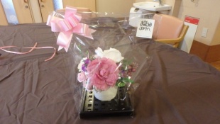 スタッフが作った造花のフラワーアレンジも喜んでいただけました。