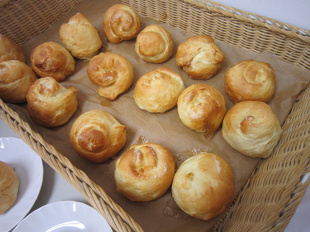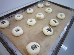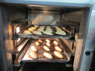 パンの成型が終り、第二次発酵をし、180度のオーブンで約10分焼きます。
