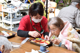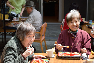 毎年、この時期にデイサービスセンターとばたでは中庭でお食事会を行っています。