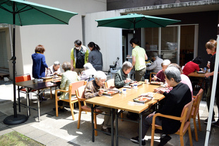 デイサービスセンターとばたでは、中庭で青空お食事会が行われましたので、その様子をご紹介します。