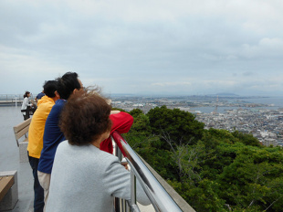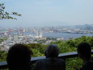 高塔山の展望台からは、若松、戸畑、小倉、門司が見え、皆さん景色も楽しまれました。