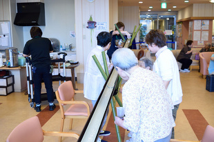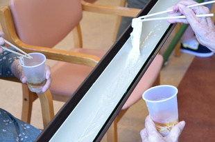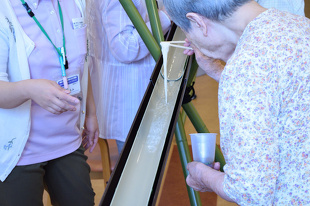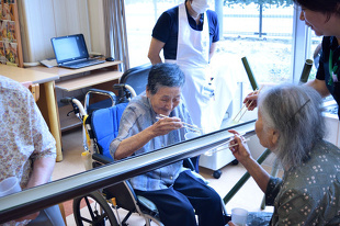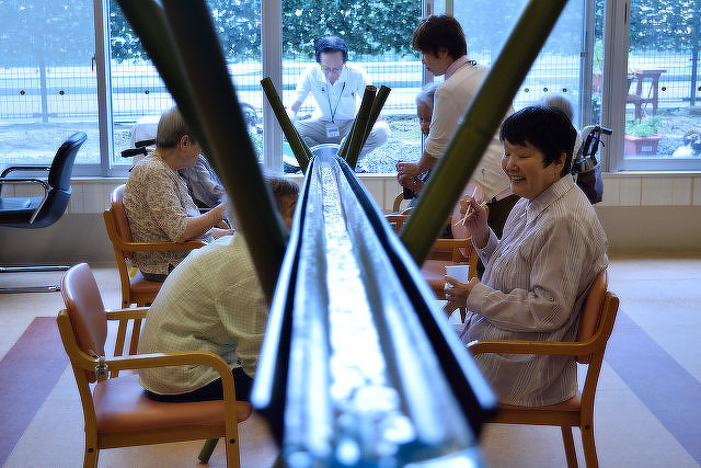 そうめん流し 今日は、デイサービスセンターとばたで行われたそうめん流しの様子をご紹介します。 デイサービスでは、スタッフが楽しそうなレクリエーションをいつも企画してくれます。 そうめん流しは昼食後に行われるのですが、皆さんお昼も沢山召し上がったのにそうめんもかなり召し上がります(笑) デイサービスでは夏になるとそうめん流しやバーベキューなどのレクリエーションが行われ、デイサービスの利用者は毎年楽しみにされています。 皆さんよく食べるからとてもお元気です。 この調子で暑い夏を乗り切りたいですね。