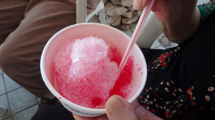 海や砂浜、風車を見て景色を楽しんだ後は、かき氷で喉を潤しました。