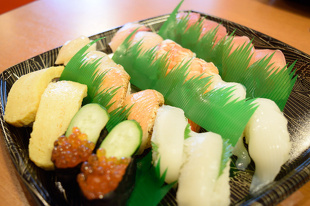 こちらは、シュリンプカクテルとお寿司!