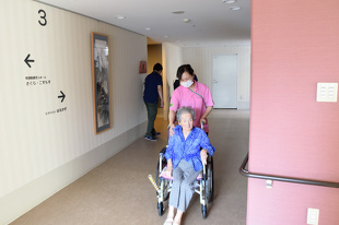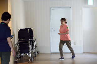 火災断定が行われると、宿直者が放送で全夜勤者へ火災直上階の入居者を非難誘導するように指示が出され、次々に夜勤者が現場に向かい、避難誘導が行われます。