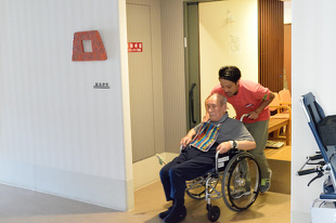 宿直者が、火災警報機で出火元を確認したら、放送でケアハウス夜勤者へ火元の確認に行くよう指示が出され、夜勤者は厨房へ向かい、火元を確認し初期消火を行います。