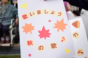 集合写真の後は、最初の写真に写っている、委員長特製の歌本が皆さんに配られ、一緒に歌を楽しみました。