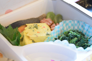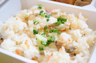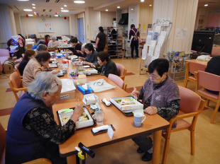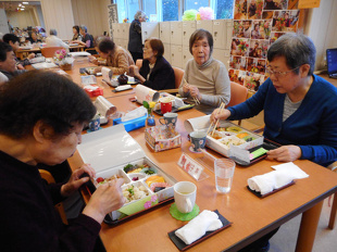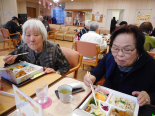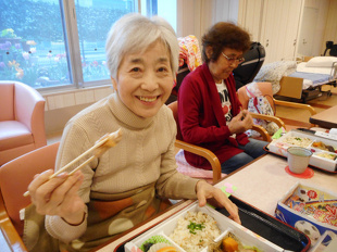 デイサービスのお花見に合わせて、栄養部門の皆さんがお花見弁当を特別に準備してくれました。