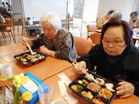 この日のお弁当は、ふれあいの里とばたの隣にあるお総菜とお弁当のお店「まーくんの店」に頼みました。
