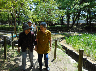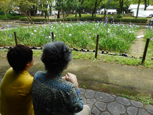 お腹がいっぱいになったので、外食レクリエーションの後は近所の夜宮公園に菖蒲を見にいきました。