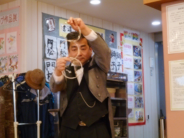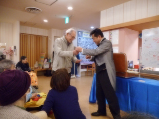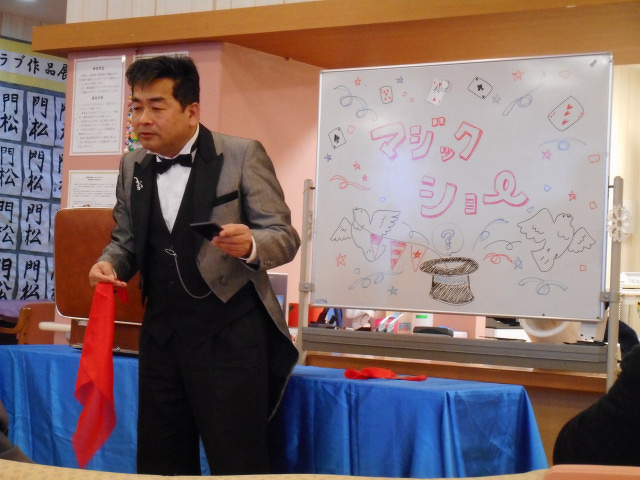 そんな寒かった土曜ですが、デイサービスセンターとばたでは、毎年恒例のマジシャン山本のマジックショーが開催されました。