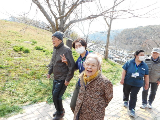 桜ドライブ 年度末の忙しさにかまけて、すっかり更新が滞ってしまいました(汗) 今日は、先週の金曜日に行われたデイサービスセンターとばたの桜ドライブの様子をご紹介します。 向かった先は、北九州市立総合体育館となりの中央公園で、お天気も良くドライブとお散歩を楽しみました。 風が少し冷たかったですが、皆さん頑張ってお散歩をされてました。 桜の開花予想を見て計画した桜ドライブでしたが、まだ少し早かったようで、ほとんどがつぼみでした(笑) ただ、桜以外の花はとても綺麗に咲いていたので、皆さんとても喜ばれていました。 お散歩の後は、コーヒーブレイク。 恐らく今週末にかけて桜は見頃になるでしょう。