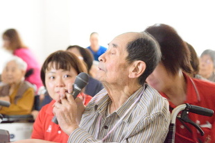 カラオケ大会は、ケアハウスの主催で行われ、参加者はケアハウスの入居者のみならず、特別養護老人ホーム、グループホームからも参加されます。