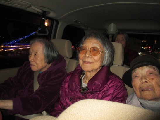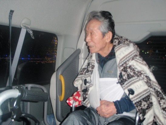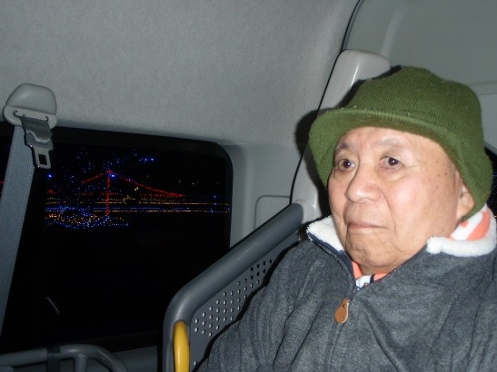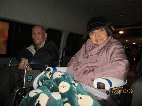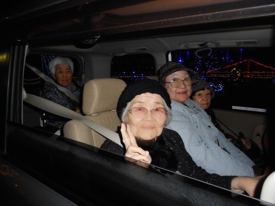 特別養護老人ホームの入居者とケアハウスの入居者を若戸大橋下のイルミネーションのところまでお連れしました。