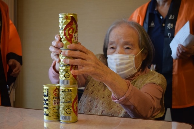ミニ運動会では、こもれびの入所者がチームに分かれ、景品をかけて熱戦を繰り広げました。