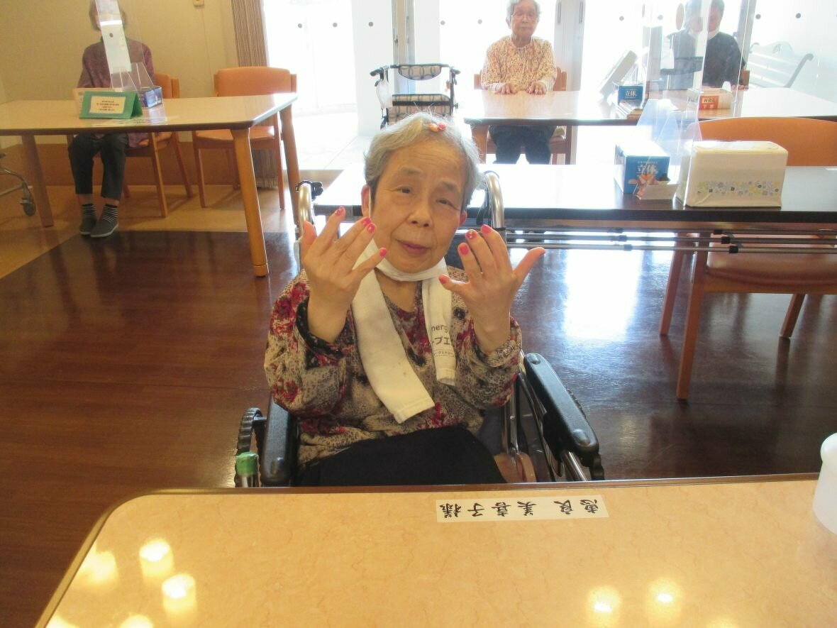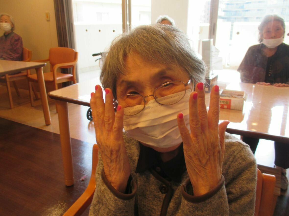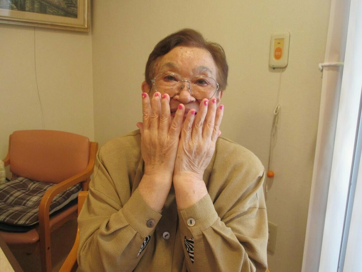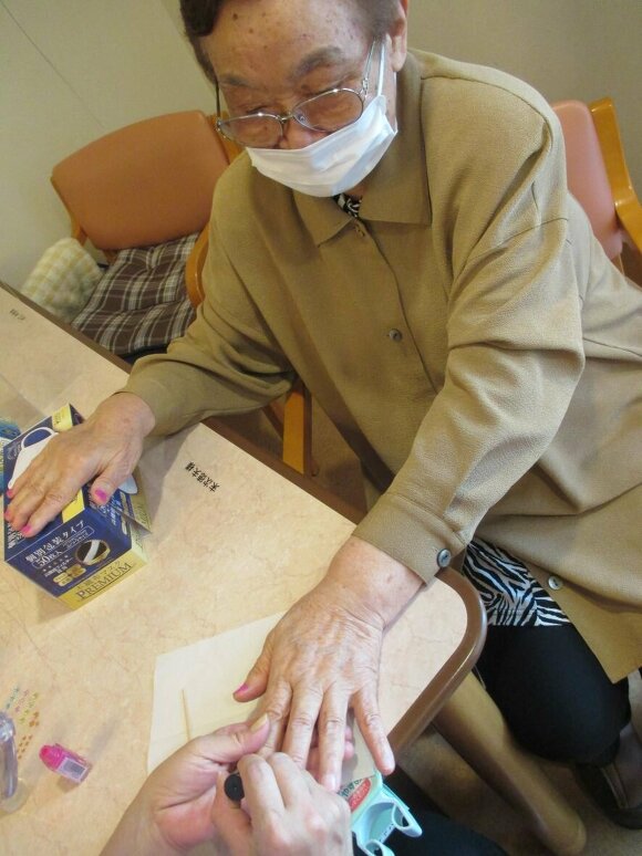 「最近はネイルなんてすることがなくなったねぇ」と言っていた入居者も、いざ塗り始めると皆さん表情が明るく若返っていきます。