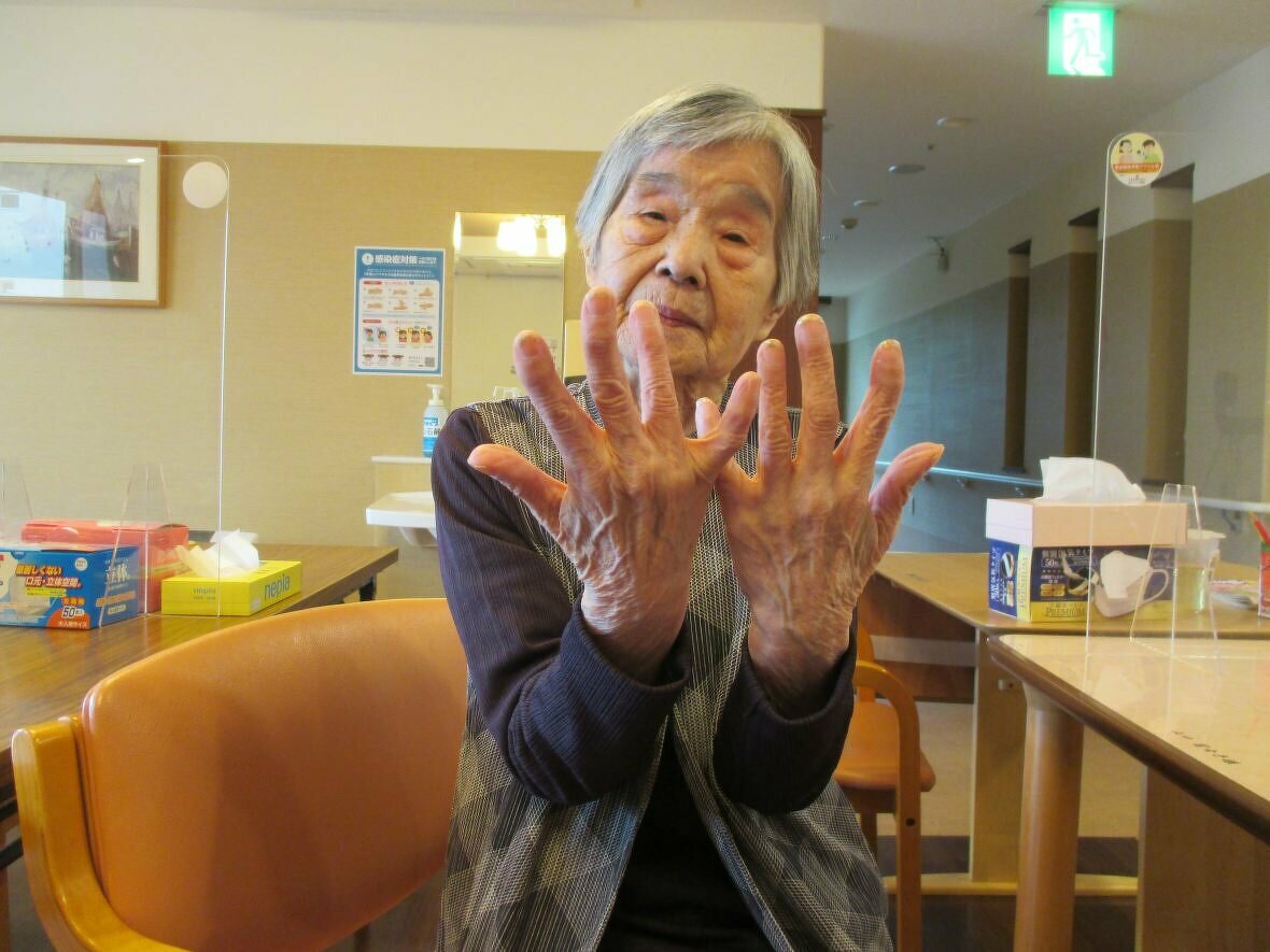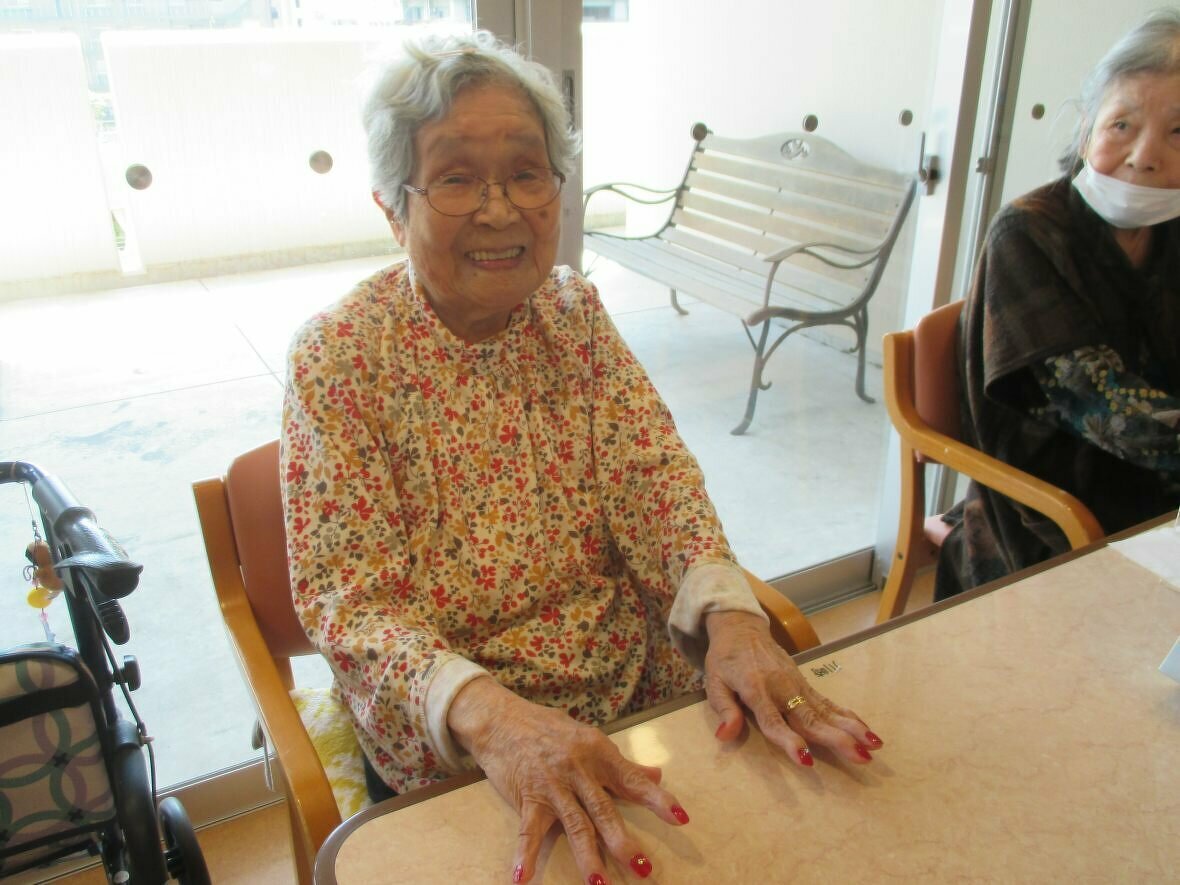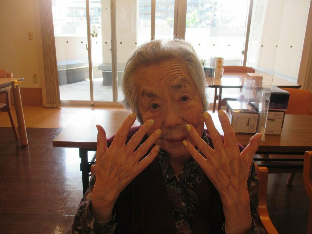 「最近はネイルなんてすることがなくなったねぇ」と言っていた入居者も、いざ塗り始めると皆さん表情が明るく若返っていきます。