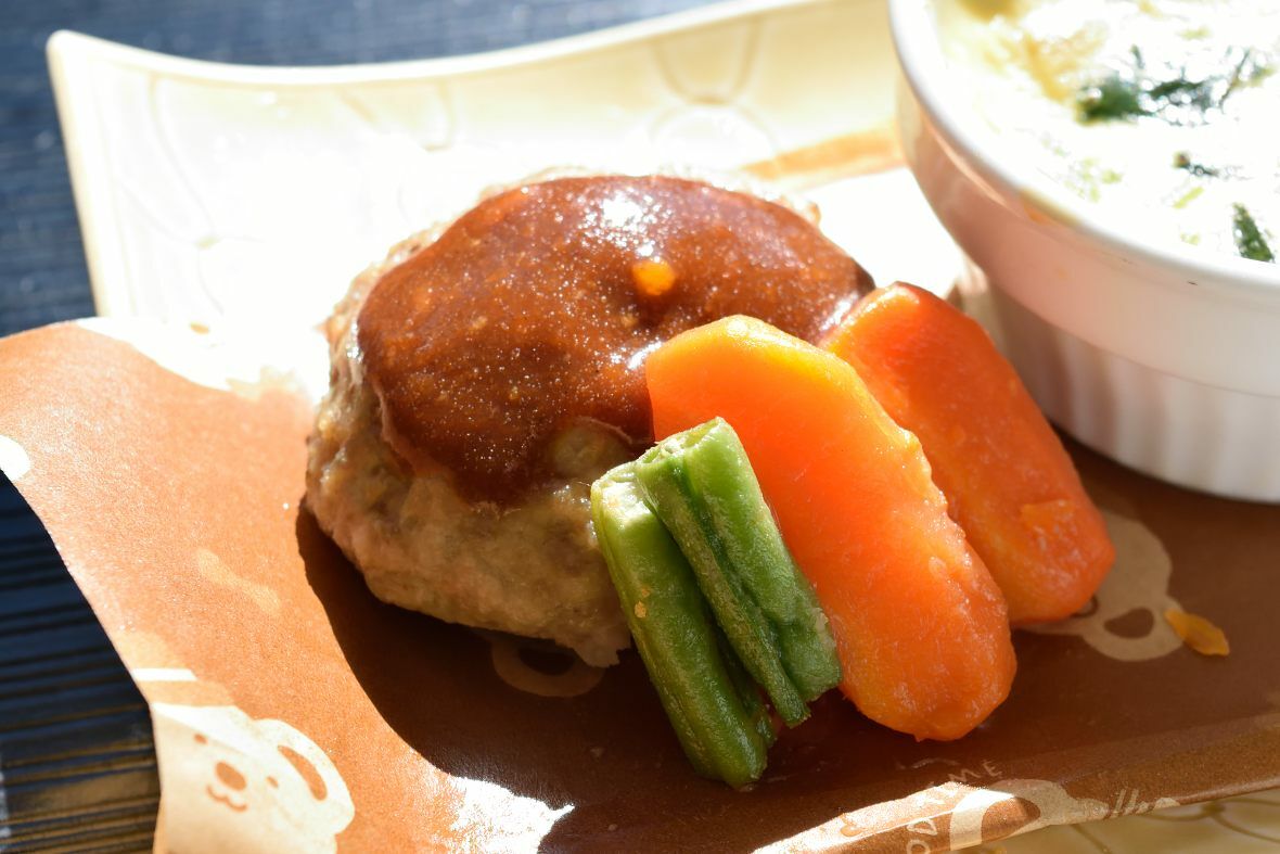 ・ハンバーグ、人参、さやいんげん