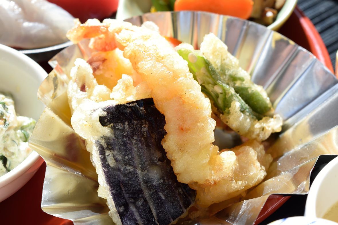 ・天ぷら盛り合わせ(えび、さつまいも、茄子、人参、オクラ)