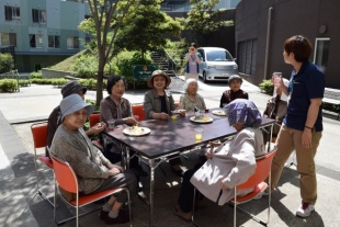 そして、中庭ではデイサービスの利用者による茶話会がおこなわれました。