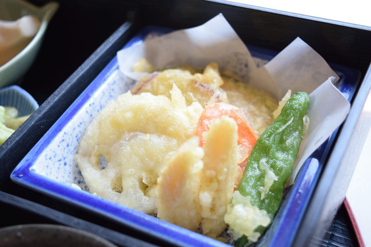 ・精進揚げ(さつま芋、れんこん、南瓜、人参、ししとう、ヤングコーン)