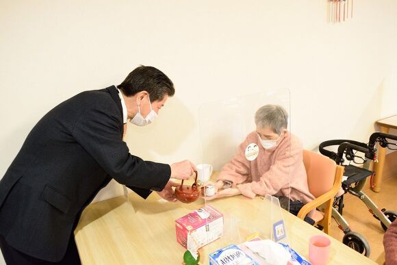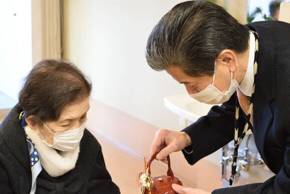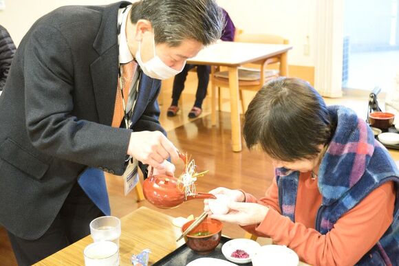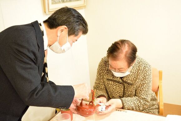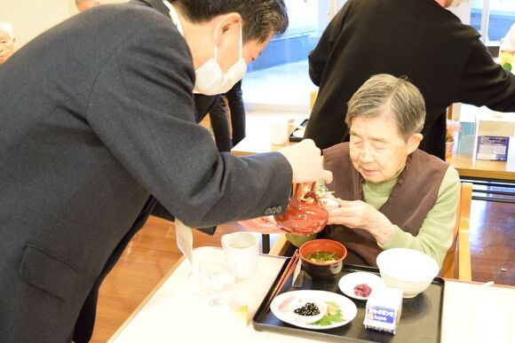 明けましておめでとうございます。 皆さま、明けましておめでとうございます。 本年も、どうぞ宜しくお願い申し上げます。 今年の元旦は、晴天の中、初日の出を拝むことができました。 元旦は恒例、総施設長からケアハウスの入居者へお屠蘇が振舞われました。 6階のあおぞらのユニットから、こもれび、あおば、はるかぜの順に振舞われました。 皆さん、とても楽しそうです。 皆さん、お屠蘇を召し上がったので、今年一年元気に過ごしていただけると思います。 寒い日が続きますが、インフルエンザに注意してください!