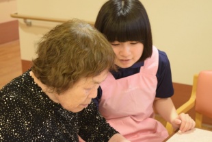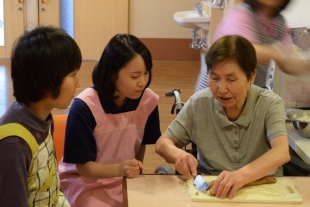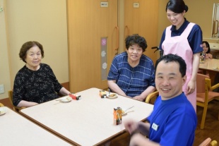 今日は西南女学院大学の看護学科の学生さんが実習に来ていたので、この行事に参加してもらいました。ご利用者さんは、若い学生さんが大好きなので、表情がとても楽しそうです。