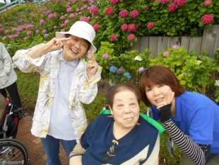 デイサービスとばたの紫陽花見学 今日は、「デイサービスセンターとばた」の紫陽花見学の様子をご紹介します。 この時期は、どの事業所さんも高塔山の紫陽花見学に行かれるようで、高塔山の駐車場付近はいつも車が渋滞します(笑) 毎年、この高塔山に紫陽花見学に来ていますが、ご利用者の皆さんは毎回楽しみにされています。 この日は、曇り空だったのでそこまで暑く無く、見学にはもってこいのお天気でした。 もうすこしすると梅雨が明け、暑い季節がやってきますね。