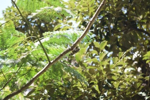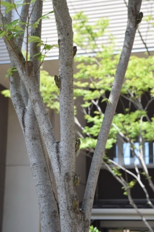 皆さん、このクマゼミが鳴くのはだいたい午前中だけとご存じでしたか?正午すぎからほとんど鳴かず、比較的に低い位置に止まってシーンとしているんです。