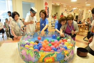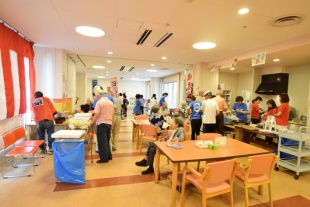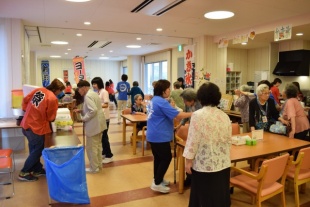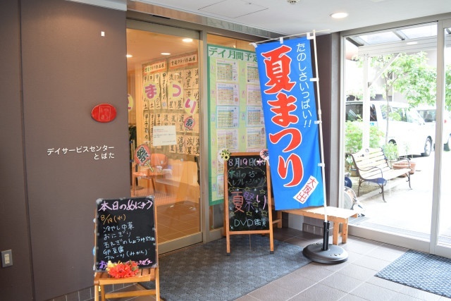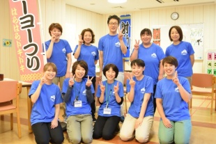 デイサービスセンターとばたの夏祭り 今日は、8月19日、20日に行われたデイサービスセンターとばたの夏祭りの様子をご紹介いたします。 夏祭りの開催に際しては、沢山の学生さんがボランティアに駆けつけてくれます。 沢山の懐かしの遊びが準備されていたので、ご利用者さんはとても懐かしいと楽しまれていました。 デイサービスセンターとばたには、自前の綿菓子器があるんですよ! この夏祭りのために、スタッフはおそろいのT-シャツを作ったそうです。 皆さん、決まってますね(笑)